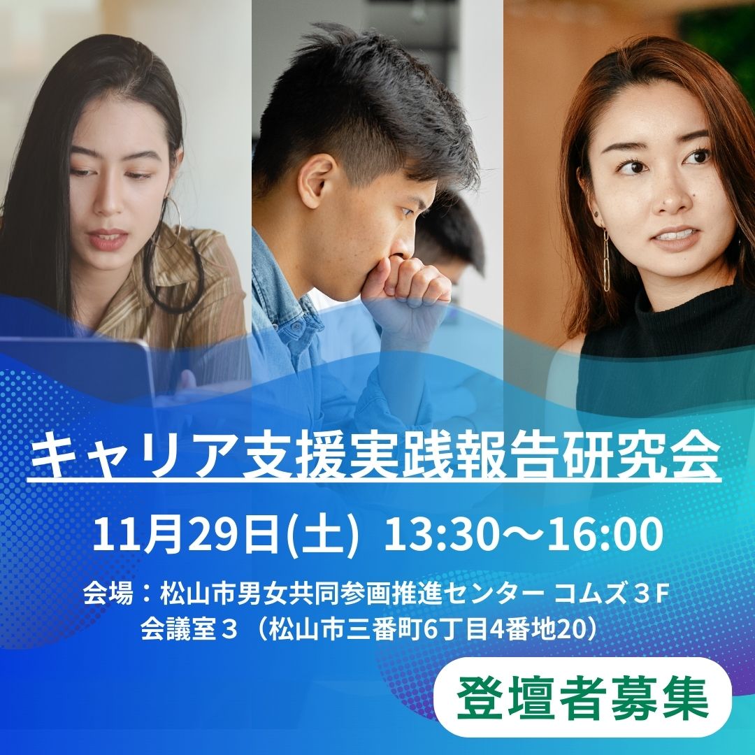 2025年11月29日(土)13:30~16:00、松山市男女共同参画推進センター コムズにて「キャリア支援実践報告研究会」を開催します。